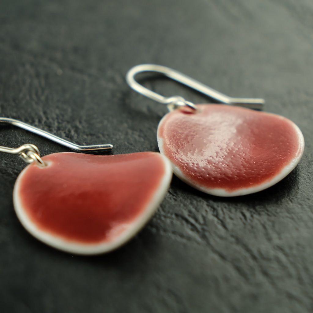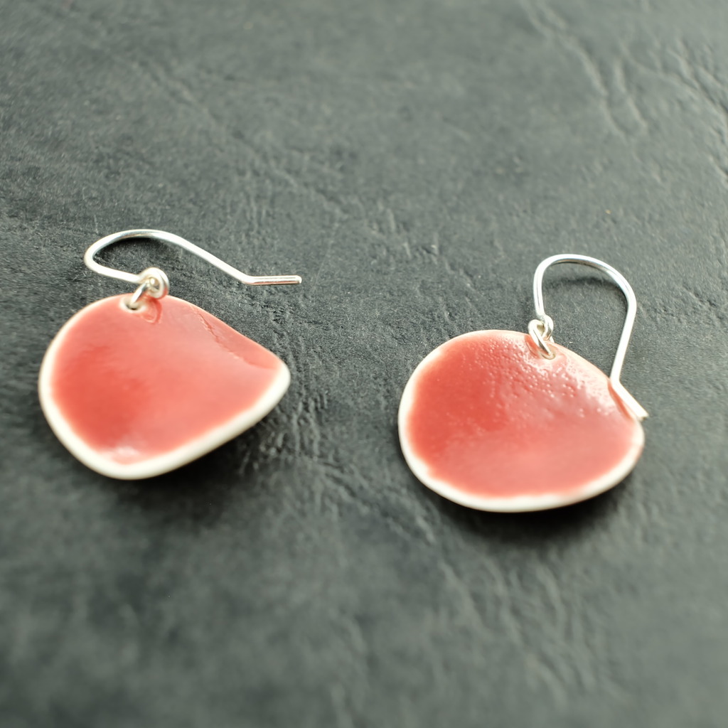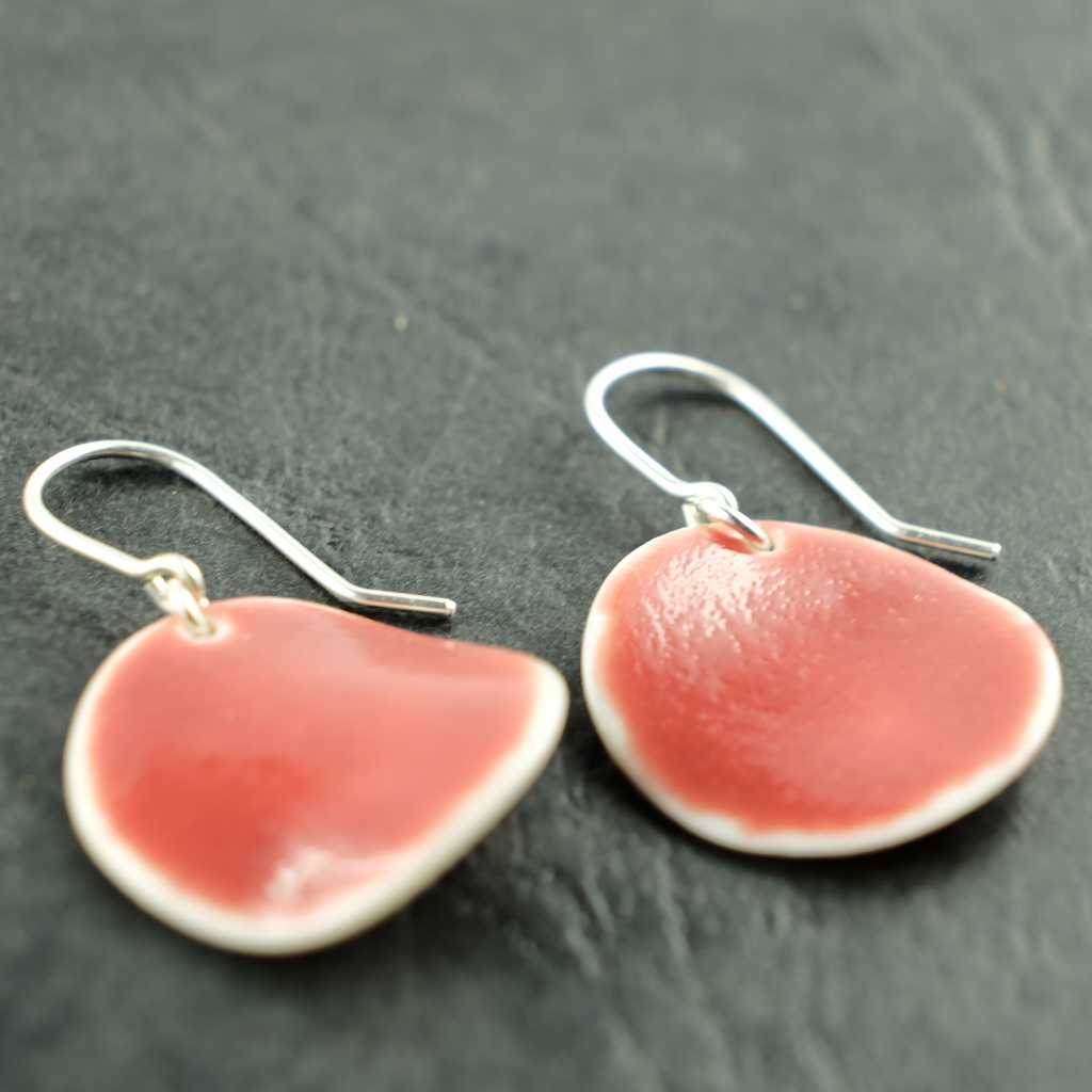 Porzellan Ohrplättchen in Rot mit einem Hänger aus 925 Silber. Ein schönes handgefertigtes Einzelstück aus unserer Manufaktur. Das Ohrplättchen ist mit einer roten Glasur versehen.