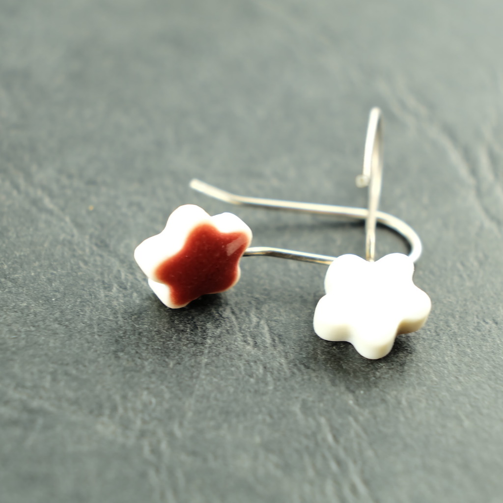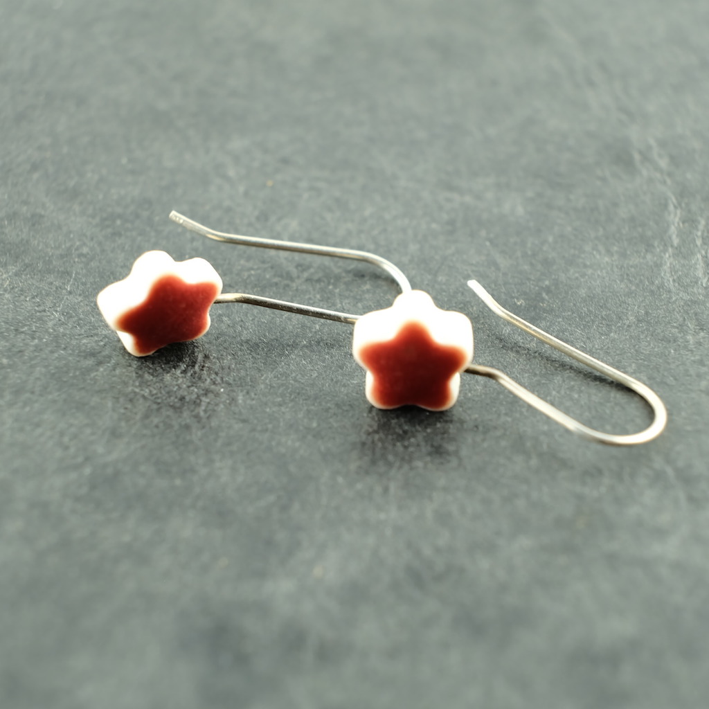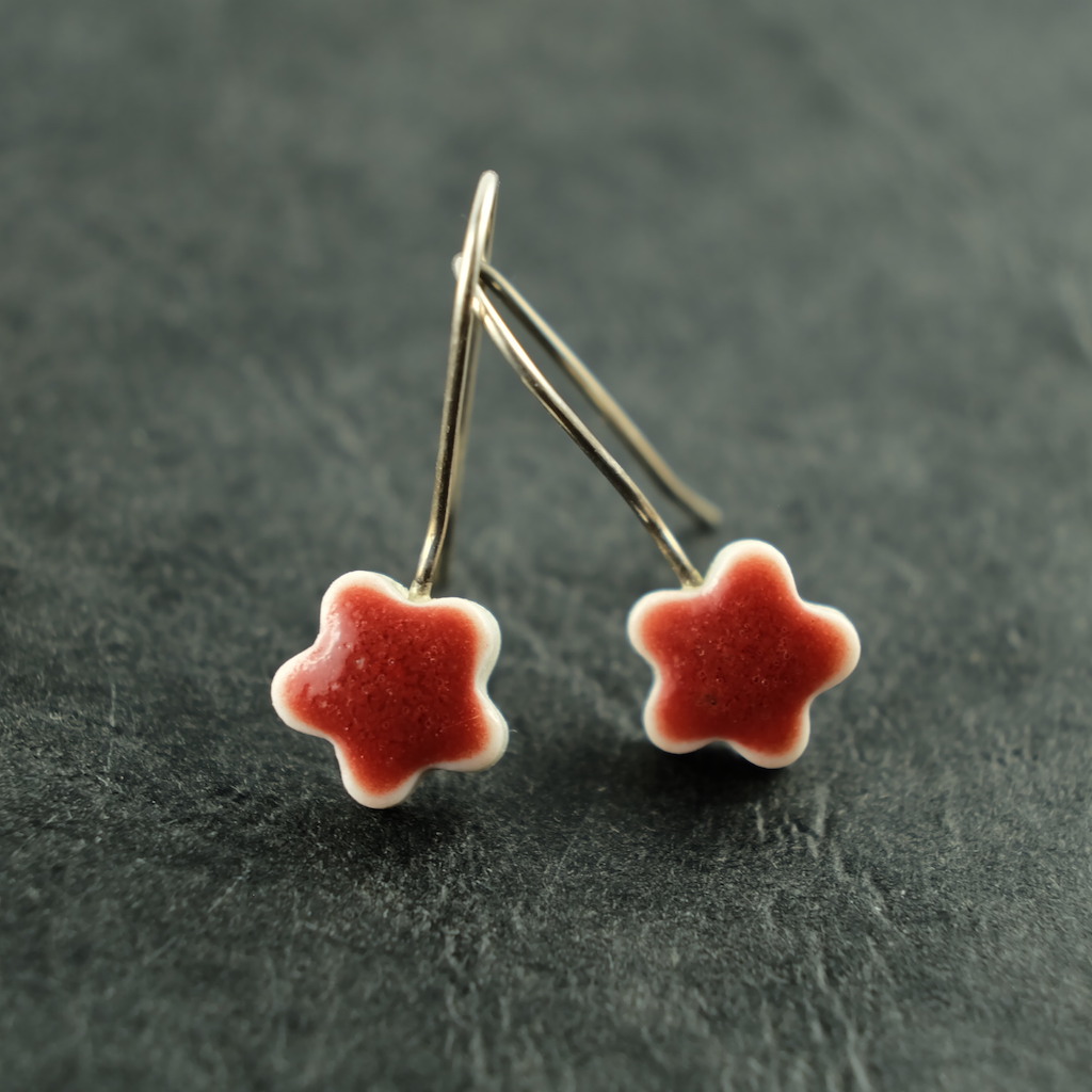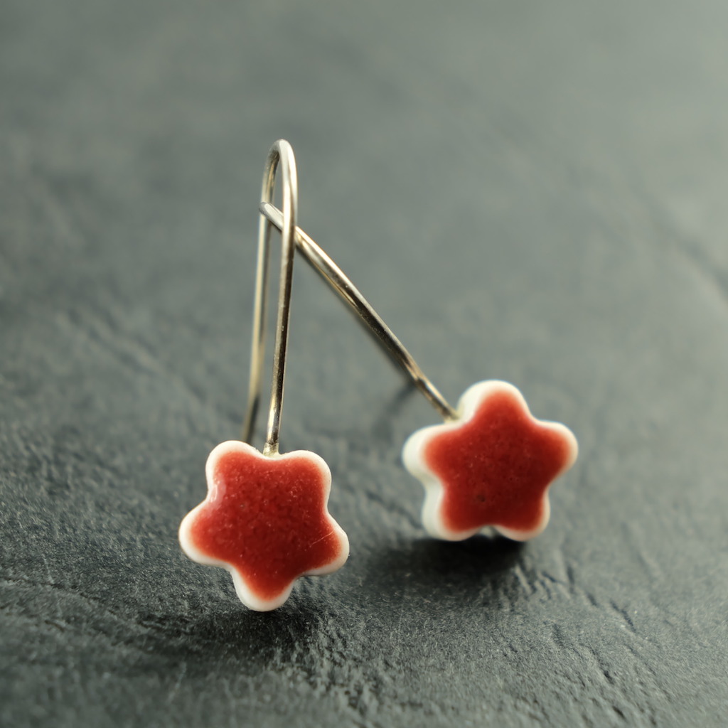 Porzellan Ohrhänger in Rot mit einem Hänger aus 925 Silber. Ein schönes handgefertigtes Einzelstück aus unserer Manufaktur. Der Ohrhänger ist mit einer roten Glasur versehen.