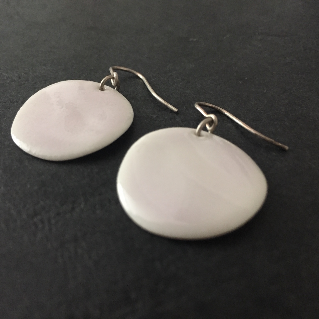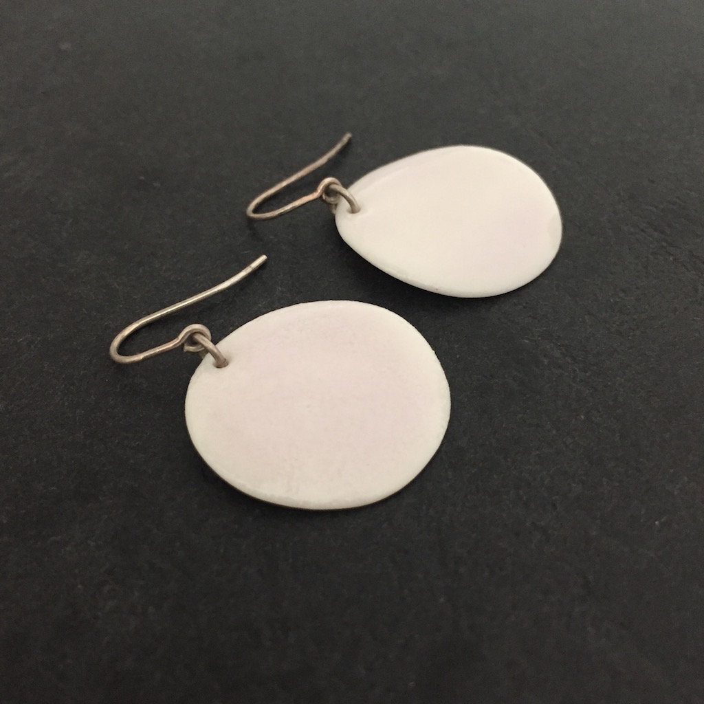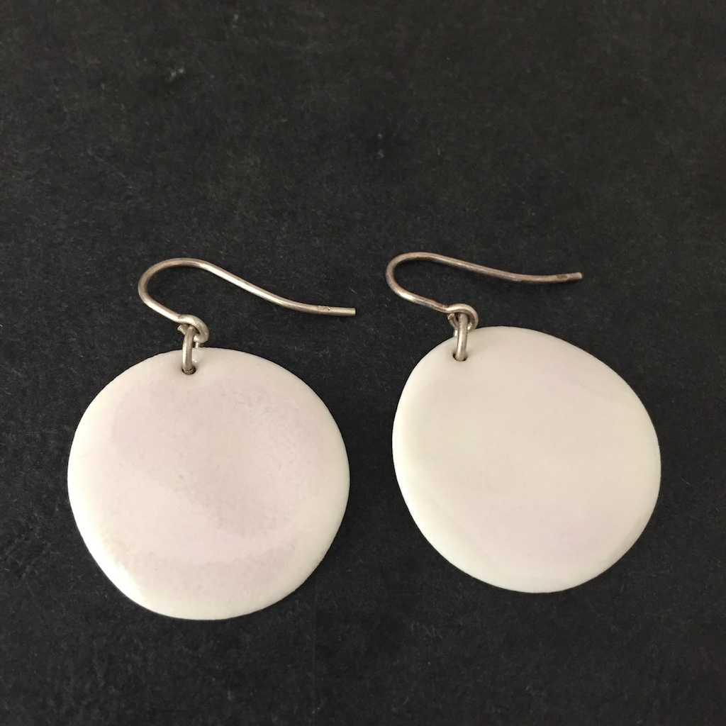 Porzellan Ohrplättchen in hellrosa mit einem Hänger aus 925 Silber. Ein schönes handgefertigtes Einzelstück aus unserer Manufaktur. Das Ohrplättchen ist mit einer hellrosa Glasur versehen.
