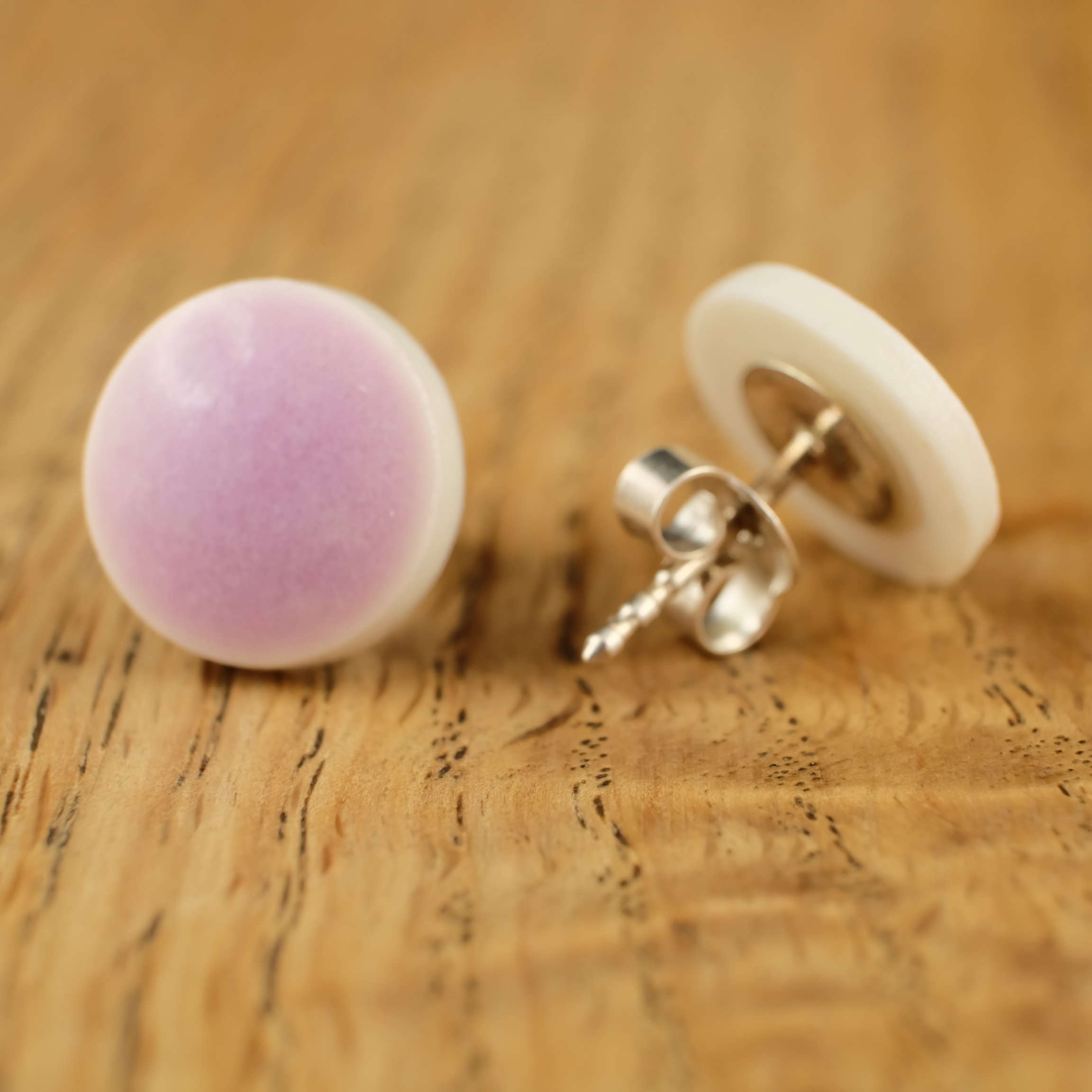 Porzellan Ohrstecker in Rund mit Verschlussteil und Ohrstecker aus 925 Silber. Ein schönes handgefertigtes Einzelstück aus unserer Manufaktur. Der Ohrstecker ist mit einer rosa Glasur versehen.