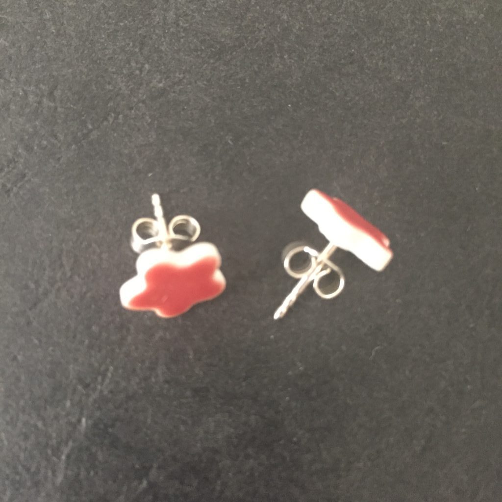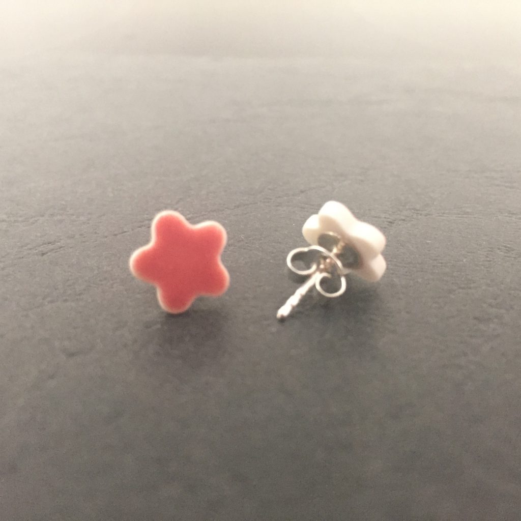 Porzellan Ohrstecker in rot mit Verschlussteil und Ohrstecker aus 925 Silber. Ein schönes handgefertigtes Einzelstück aus unserer Manufaktur. Der Ohrstecker ist mit einer roten Glasur versehen.