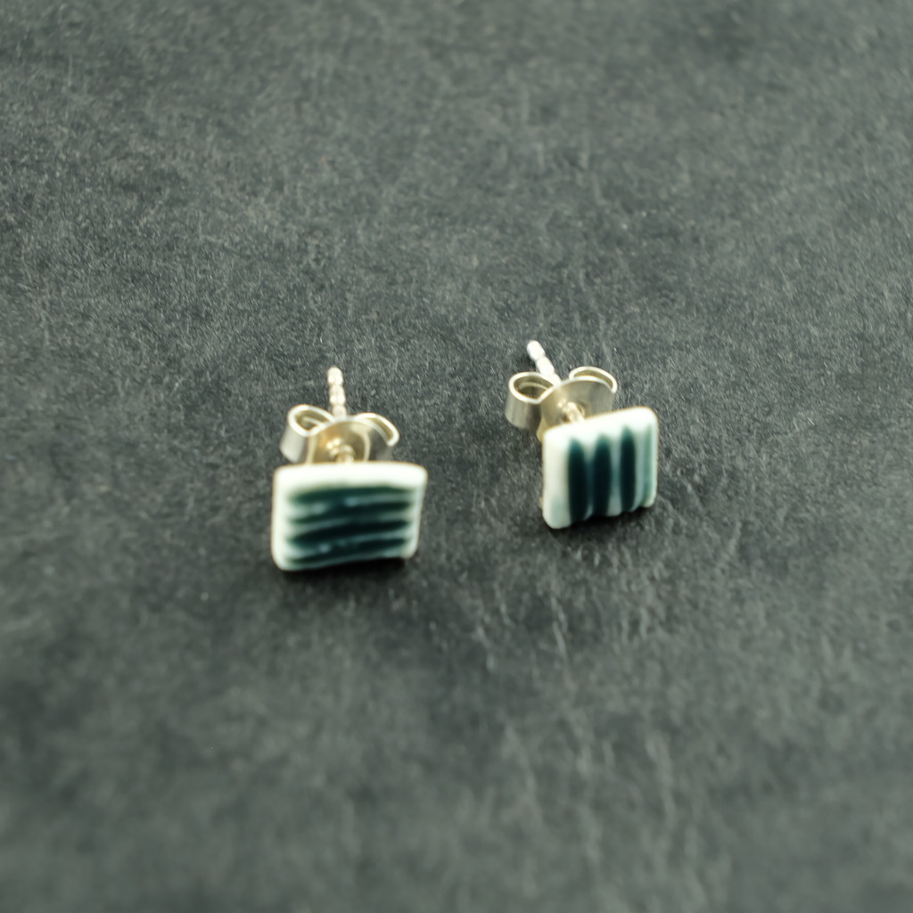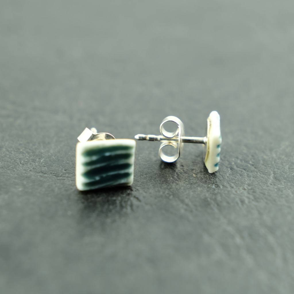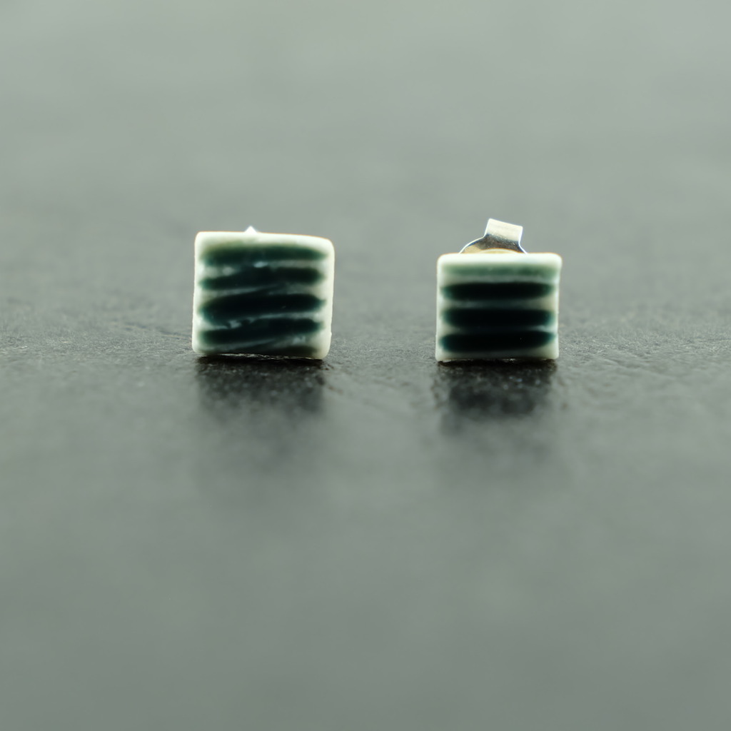 Porzellan Ohrstecker in Blaugestreift mit Verschlussteil und Ohrstecker aus 925 Silber. Ein schönes handgefertigtes Einzelstück aus unserer Manufaktur. Der Ohrstecker ist mit einer blaugestreiften Glasur versehen.