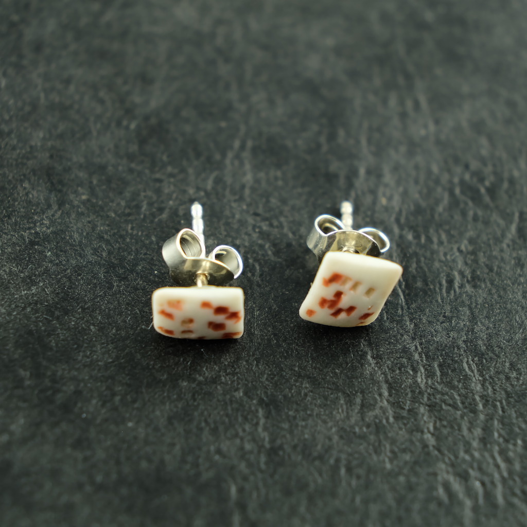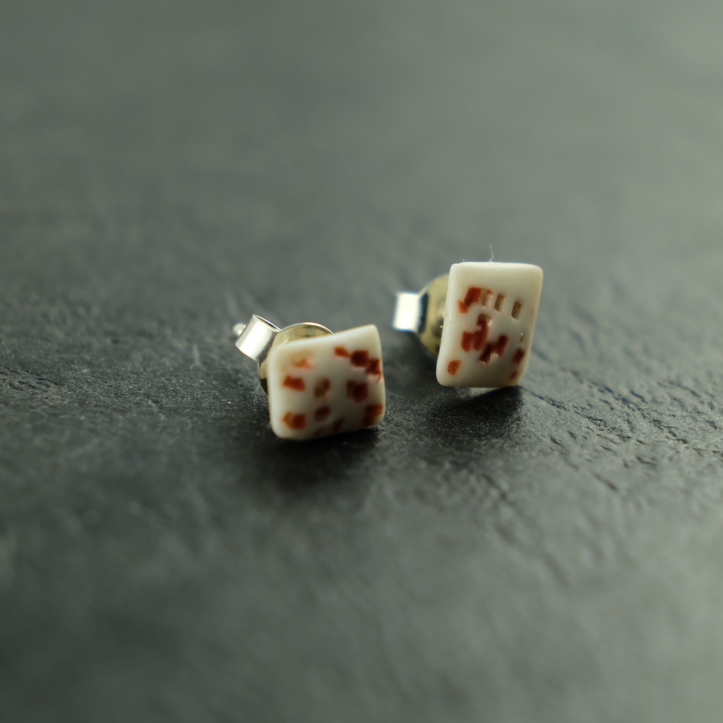 Porzellan Ohrstecker in Rotgepunktet mit Verschlussteil und Ohrstecker aus 925 Silber. Ein schönes handgefertigtes Einzelstück aus unserer Manufaktur. Der Ohrstecker ist mit einer rotgepunkteten Glasur versehen.
